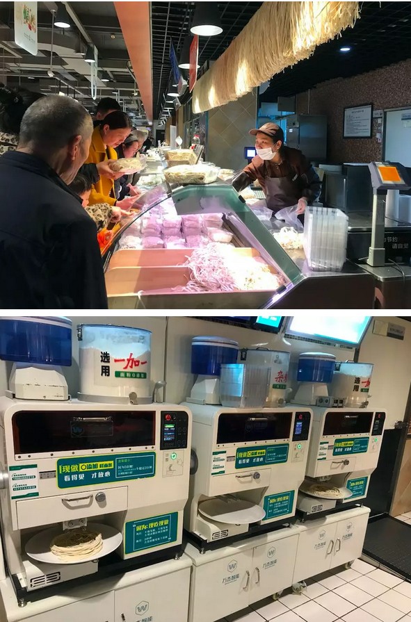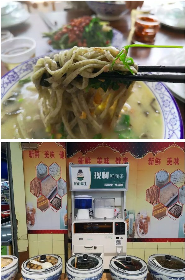 2016年下半年,許昌市作為樣板市場,正式開始鋪設鮮面機,不知不覺,已快3年,目前許昌市大范圍鋪設鮮面機,樣板市場從創(chuàng)立到發(fā)展至今逐漸成熟,經(jīng)過了一段創(chuàng)新實踐的探索之路。 從進駐雜面館到制作出的雜面條成為餐桌上的美味,從入駐胖東來等知名商超到被眾多老百姓熟知并認可,從傳統(tǒng)渠道的深耕再到打破常規(guī),入駐中原銀行,為全國的客戶與合作伙伴提供更多可借鑒的發(fā)展新思路。許昌市越來越多的老百姓,已經(jīng)習慣了鮮面機的陪伴,甚至,有些依賴。 這期間,有思考也有收獲。現(xiàn)如今,就智能鮮面機許昌市場的發(fā)展最新進展總結(jié)如下,希望與朋友們分享、共勉,能為朋友們帶來更多的借鑒。 一、 面館寵兒,省人工,配比好掌控。 在許昌有很多只賣雜面條的餐館,店里以主打雜面條為主,這類餐館就因為賣這種雜面條備受歡迎。而且,雜面條既美味又營養(yǎng),逐漸被越來越多的消費者認可。其中,許昌的野菜黑豆面和琛晟客來香雜面館是兩個新開業(yè)不久的雜面館。店老板表示,之所以選用智能鮮面機,一方面,可以有效的節(jié)省人工,降低成本;另一方面,雜面條的配比很重要,智能鮮面機現(xiàn)吃現(xiàn)做,可以輕松的調(diào)制面條和雜糧的比例,有效的保障面條的口感。此外,面條吃多少做多少,沒有浪費,為他們解決了做面的大難題。 值得一提的是,在琛晟客來香雜面館擺放了兩臺智能鮮面機設備。一臺擺放在一樓的進門處,可以與消費者面對面實現(xiàn)互動溝通,有效的聚集了人氣。另一臺則擺在后廚擔當起重任。兩臺智能鮮面機設備同時工作,成為店中不可或缺的“關(guān)鍵人物”。 二、 現(xiàn)制面條逐漸在商超店中成為流行。