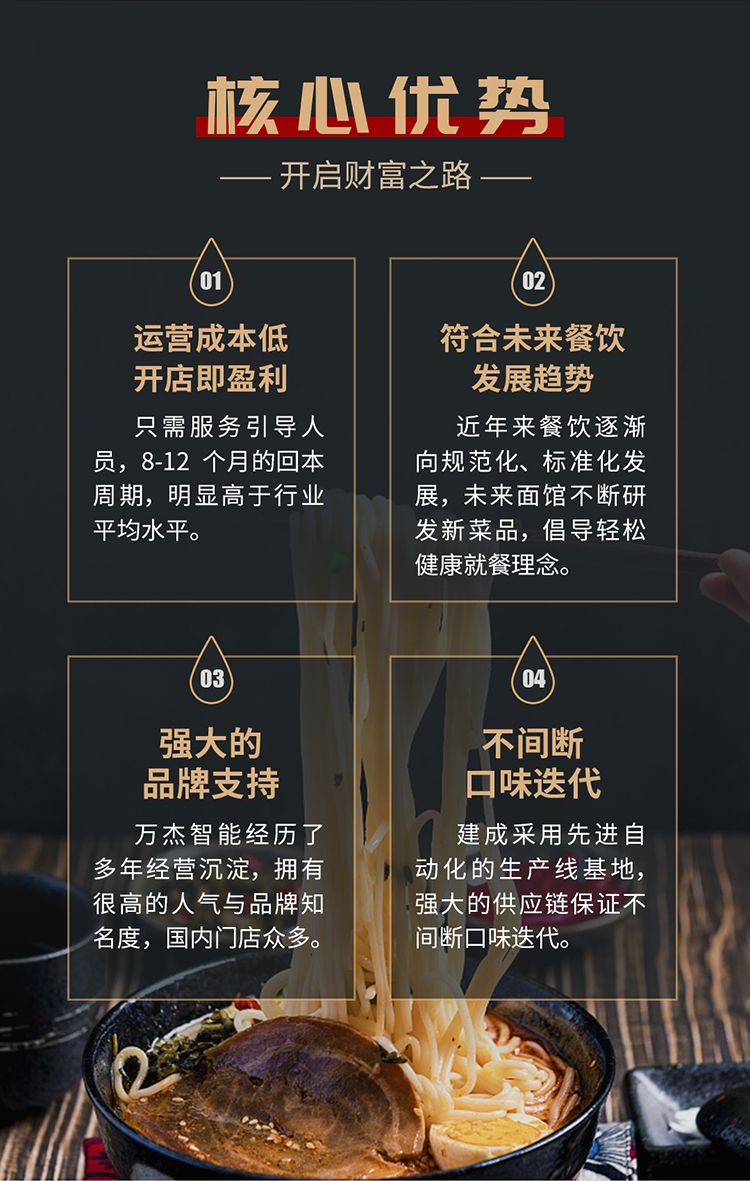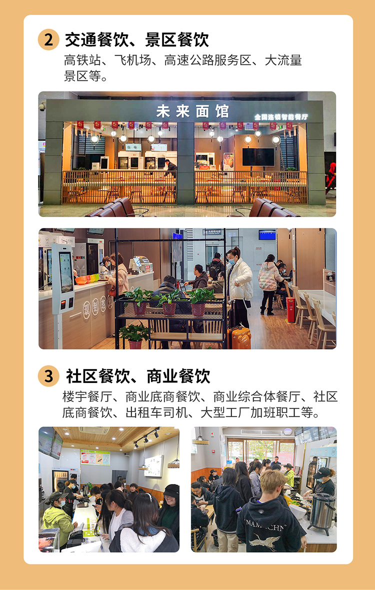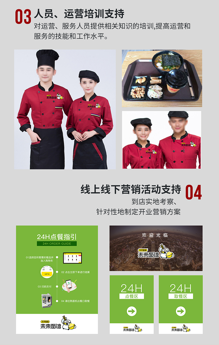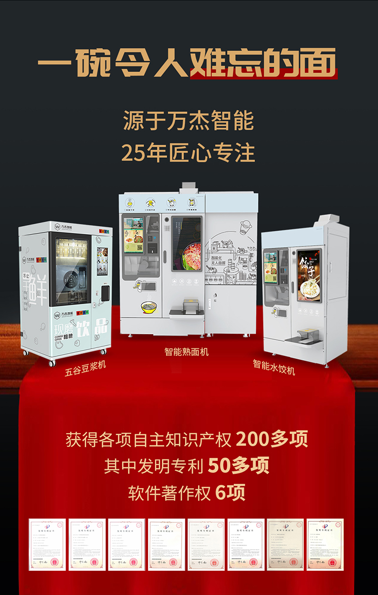 • 可以實現24小時不間斷供應面、水餃、五谷飲品、飲料等;